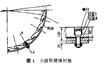銅礦選礦產(chǎn)現(xiàn)有2臺(tái)φ3.2m×3.1m格子型球磨機(jī),均為1959年投入使用的格子型球磨機(jī),目前,這倆臺(tái)格子型球磨機(jī)年處理礦石35~40萬t(較多年處理量曾達(dá)60萬t以上),在簡體橫斷面上,沿筒體圓周有24塊小波形襯板一塊壓著一塊,格子型球磨機(jī)每塊用2只M36螺釘與筒體固定,相鄰倆塊在筒體長度方向上的間隙錯(cuò)開,格子型球磨機(jī)通過長期對(duì)其使用和失效情況的考察發(fā)現(xiàn),失效報(bào)廢幾乎都是因螺釘松動(dòng)引起格子型球磨機(jī)筒體漏砂。